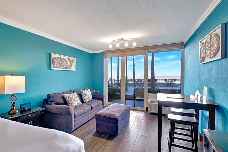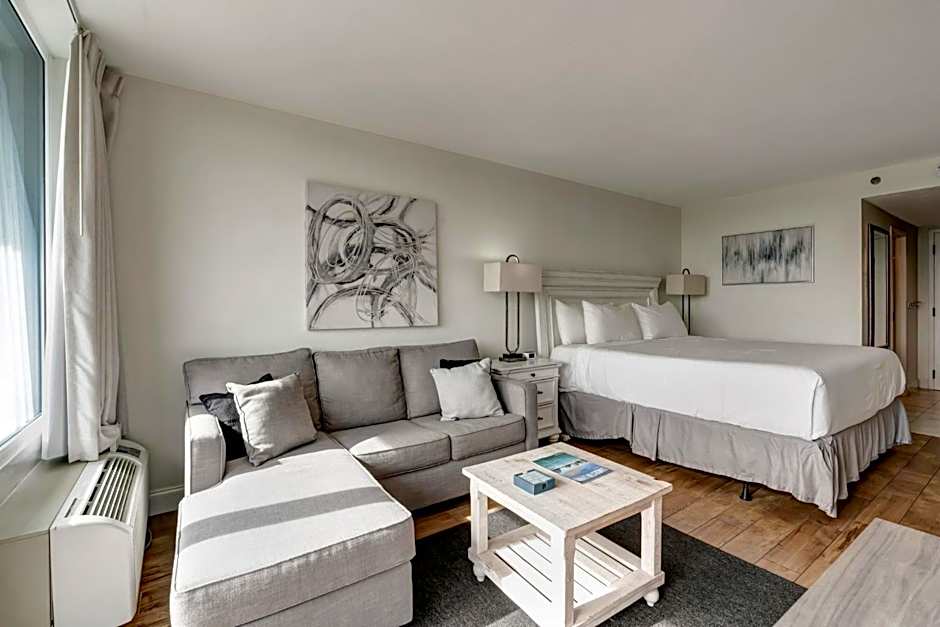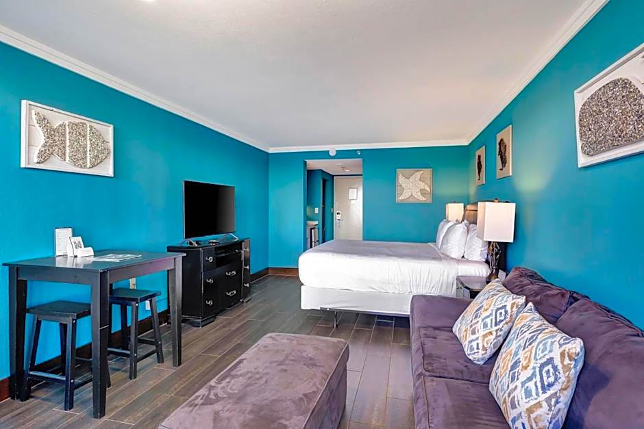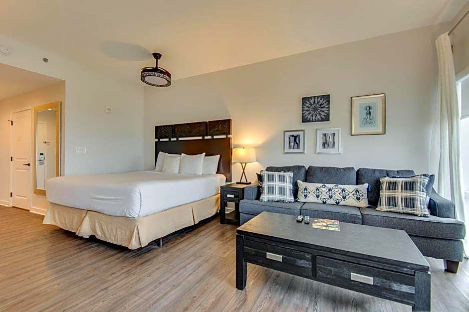 Units are 353 square feet and bedding consists of king size bed and twin-sized sleeper sofa. Bedding may vary in each unit.