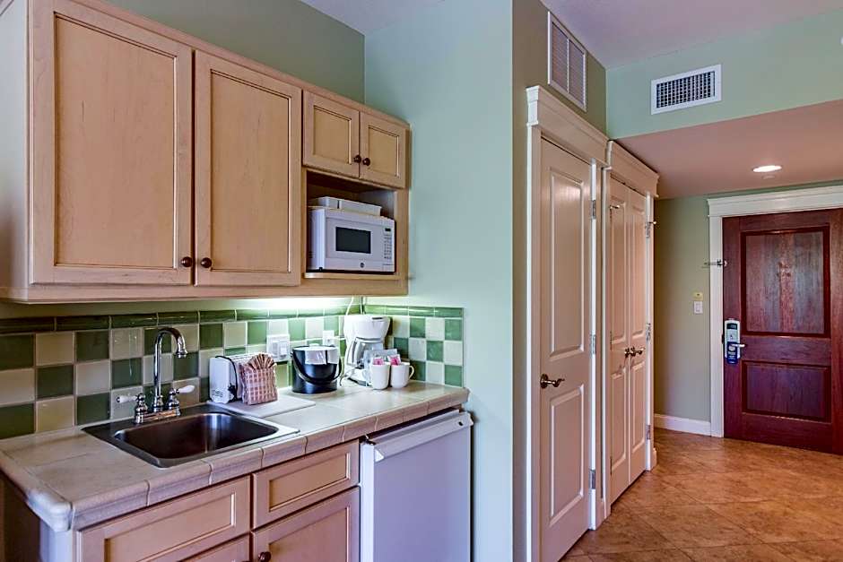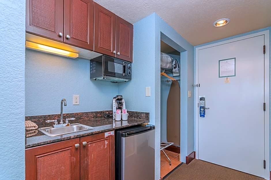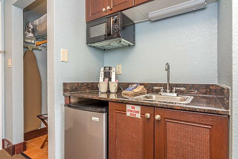 Studios feature a kitchenette consisting of microwave, small refrigerator, coffee pot, and toaster. They also feature wireless internet access (surcharge). Conveniences include iron/ironing board, individual climate control, air conditioning, a wake-up call service, color cable television, and telephone.