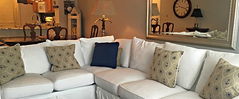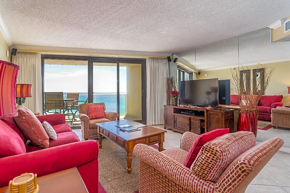 This apartment features a balcony, sofa and kitchenware. It is 1.5 mi from the Gulf of Mexico. Please note that the decor will vary by unit.
